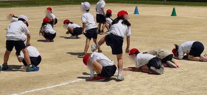 体育の学習です。鬼ごっこや馬跳びなどで思い切り身体を動かしていました。元気いっぱいです。