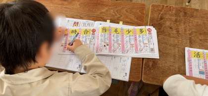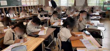 国語の学習です。新出漢字の練習をしています。ドリルを使って反復練習をしっかりします。