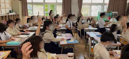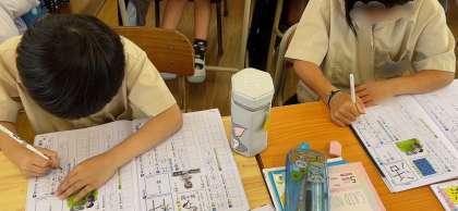 国語の漢字学習をしていました。ドリルを使って一字一字丁寧に練習していました。