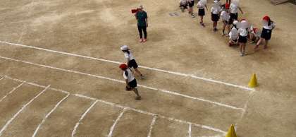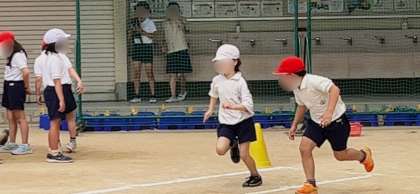 体育の学習で、50メートル走の記録を計っていました。一所懸命頑張っていました。