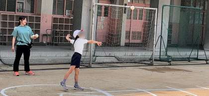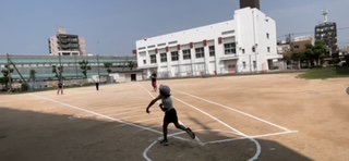 スポーツテストのソフトボール投げの記録をとっていました。空めがけて思い切り投げていました。