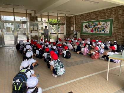 5月26日(金)です。今日は1・2年生が遠足に出かけます。天気が心配でしたが、雨が降らずによかったです。無事、出発しました。