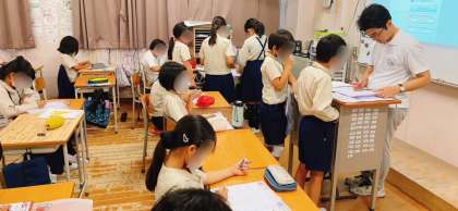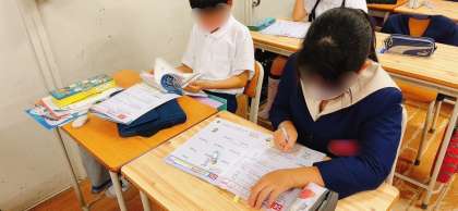 算数の学習です。小数の掛け算の練習問題を算数ドリルを使って頑張っていました。