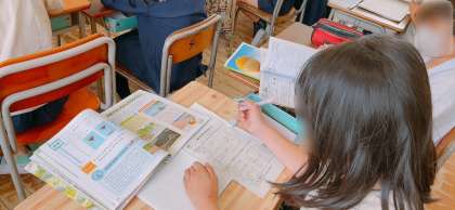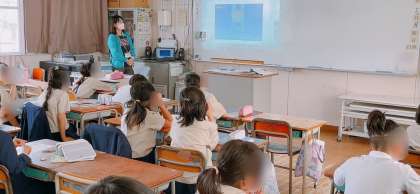 理科の学習で、土に水がしみ込む時の様子について動画を見てプリントにまとめていました。