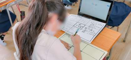 漢字曼荼羅を作っていました。漢字は、既習漢字だけでなくタブレットで検索して決める子もいました。