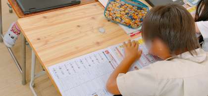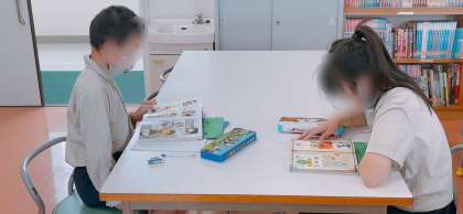上段は1組、図書の時間です。めいめいが静かに読書していました。下段は2組、国語の漢字練習をしていました。