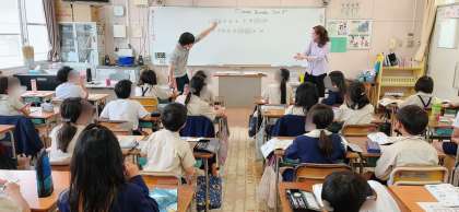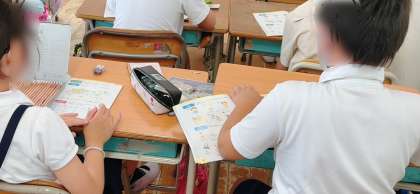 英語学習の時間です。ビンゴゲームで数字の学習をしたり、動画を観ながら各国の名前や天気などの学習をしたり、楽しみながら身近な物事の英単語に触れています。