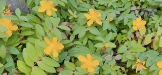 学校の柵沿いに咲いている花です。上段はセイヨウキンシバイ(以前に一度ご紹介しました。)、下段はマツバギクです。
