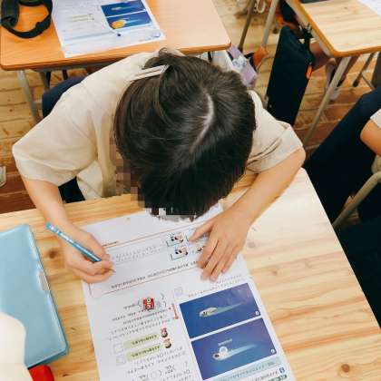理科のテストに取り組んでいました。メダカの育ちについてです。しっかり頑張って!