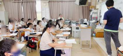 算数の学習です。今日は2組の担任が出張なので分割学習ではなく各学級での授業です。2組は習熟担当が授業しました。上段が1組、下段が2組の様子です。