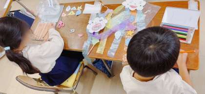 図工の学習の続きです。カラフルな雨を降らすかわいい雲が完成しつつあります。みんな、一所懸命です。