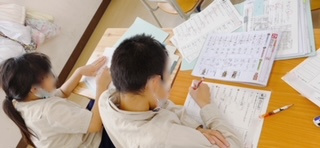 国語の時間です。漢字テストのやり直しをしていました。間違ったところをドリルなどを見てやり直し、先生に確認してもらってました。
