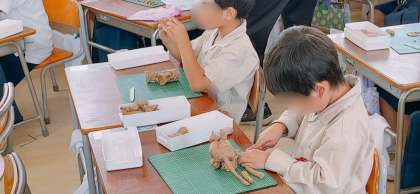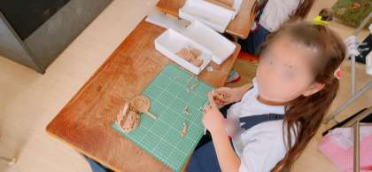 粘土でいろんなものを作っていました。かわいい犬や長い蛇、ぐるぐるうずまきもありました。