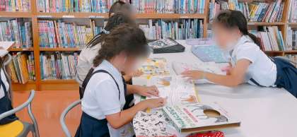 図書の時間です。友だちといっしょに図鑑を見たり、絵本を読んだりしている子が多かったです。