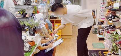 商店街たんけんでは、お店の人にインタビューをして、いろいろなお話をお聞きしました。学校に帰ったらみんなで発表し合います。