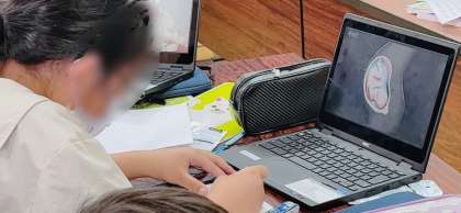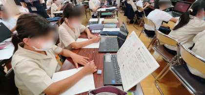 理科の学習です。今日もネットやプリントなどを使ってメダカの誕生についてまとめていました。