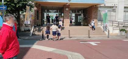 土曜日にも関わらず、見守り隊や区青少年指導員の方々に見守り・あいさつ活動をしていただきました。ありがとうございました。