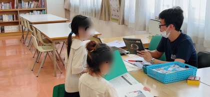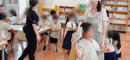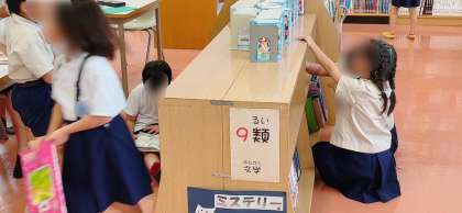 図書の時間でした。次はどの本を借りようか迷っています。決まったら先生に登録してもらいます。