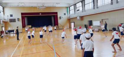 上段は屋外・屋内スポーツクラブが合同で活動していました(熱中症アラートの危険表示が出ていたため運動場が使用禁止になった)。下段は、ポスター・イラストクラブの様子です。