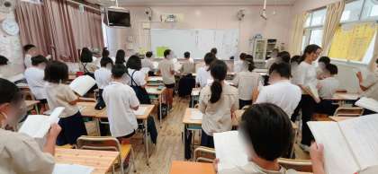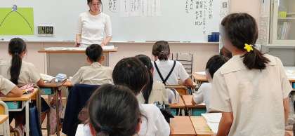 5年生の国語科で授業研究会をしています。物語文「世界でいちばんやかましい音」を題材に山場で起こる変化について考える学習でした。