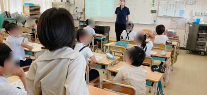 C-NETとの英語活動の時間でした。先日のジャンケンゲームの結果をそれぞれで英語で発表していました。