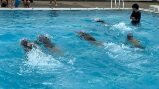 プール水泳学習の様子です。けのび、伏し浮き、バタ足からクロールの練習に入っています。