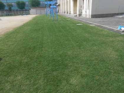 今日、運動会に向けて芝生をカットしました。