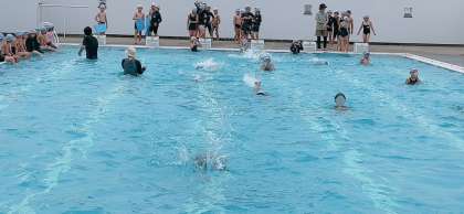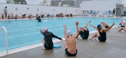プール水泳学習です。クロールの練習に入りました。クロールの手のかき方を確認した後、泳力別(自分で選択していました)に分かれて練習していました。
