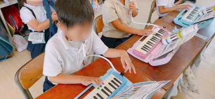 音楽の学習で、鍵盤ハーモニカの練習をしていました。運指が随分上手になりました。