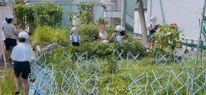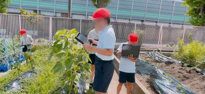 理科の学習で、栽培しているひまわりやほうせんかなどの写真を撮っていました。観察日記用だそうです。
