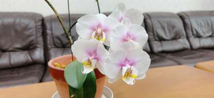 校長室にある胡蝶蘭です。今年で3年連続できれいな花を咲かせてくれています。いつもは校長室の天窓から顔を覗かせています。来校の際は見つけてくださいね。