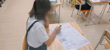 3年生も1・2組ともテストに取り組んでいました。国語のテストでした。