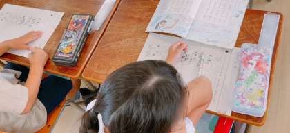 国語の学習です。短い文を作るプリントに取り組んでいました。