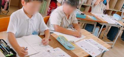 算数の学習です。教科書のまとめの問題をみんなで考えていました。