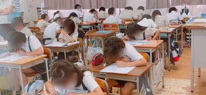 算数のテストに取り組んでいました。1学期のまとめのテストでした。