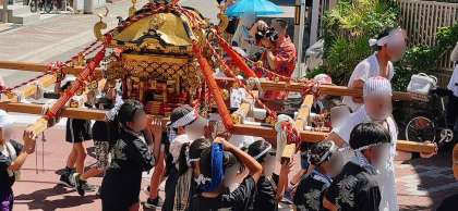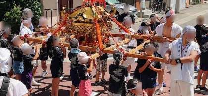 学校で休憩した後は、3・4年生が神輿を担いでいました。
