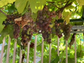 こんにちは、8月10日(木)です。暑い日が続いています。皆さん、おかわりないでしょうか。学校では、校内の草花や木々たちが暑さに負けず成長しています。ぶどうやザクロ、ミニトマト、とうがらしなどが実をつけています。