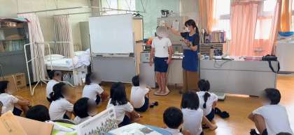 今日は4年生が発育測定の日でした。養護教諭から成長についての話を聴いた後、順番に測定を受けました。