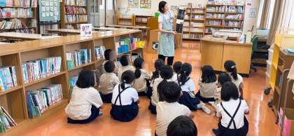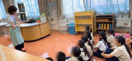 図書の時間に、図書支援員さんに読み聞かせをしていただきました。子どもたちの大好きな時間です。じっと聴きいっていました。