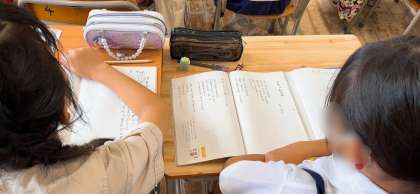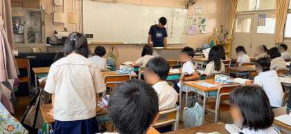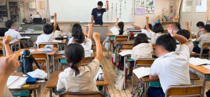 国語の学習で、詩の世界を味わっていました。友だちの感想に賛同する人は手を挙げて意思表示していました。
