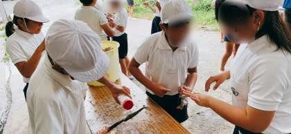 上手くいかない人や魚が少し苦手な人などには、みんなが手伝っています。