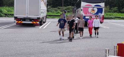 5年生一行は、休憩場所のまほろばサービスエリアに着きました。10分程停車して出発します。このままノンストップで帰校して17時過ぎの到着予定です。