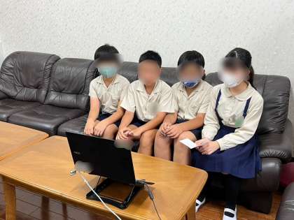 今日の全校朝会では、代表委員会から運動会のスローガンについての話がありました。