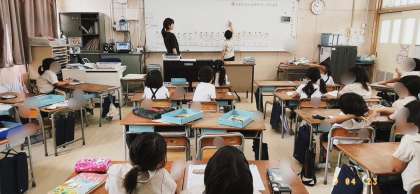 算数で、数の並びについて学習していました。簡単な数直線を使ってわかりやすく工夫していました。