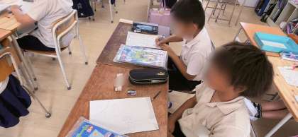 図工の学習で、「くぎうちゲーム」の製作に取り組んでいました。まずは、土台ボードのデザイン下絵を考えていました。個性いっぱいのデザインが出てくると思います。