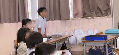 国語の学習です。物語文の主人公が何を考えていたかについて自分たちの意見を発表しあってました。思っていることをしっかりと発表できる子がどんどん増えています。