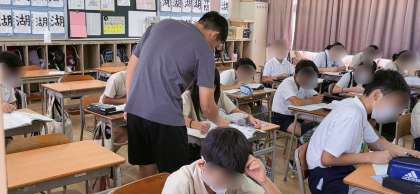算数の学習です。三角柱の体積を求める課題に取り組んでいました。