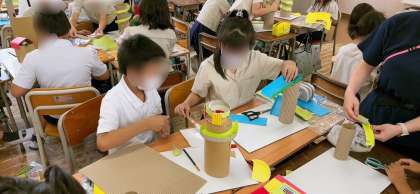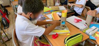 図工の学習です。先日から取り組んでいる立体作品「コロコロガーレ」の製作が進んでいます。