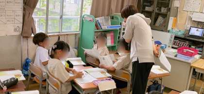 主人公ニャーゴの気持ちの変化を感じとり、班で話し合いながら自分の考えを深めました。ニャーゴの気持ちが表れた鳴き声をみんなの前で発表しました。