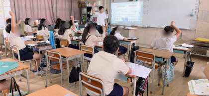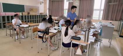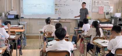 算数の学習です。「比」の単元です。学年を3分割して少人数で学習しています。